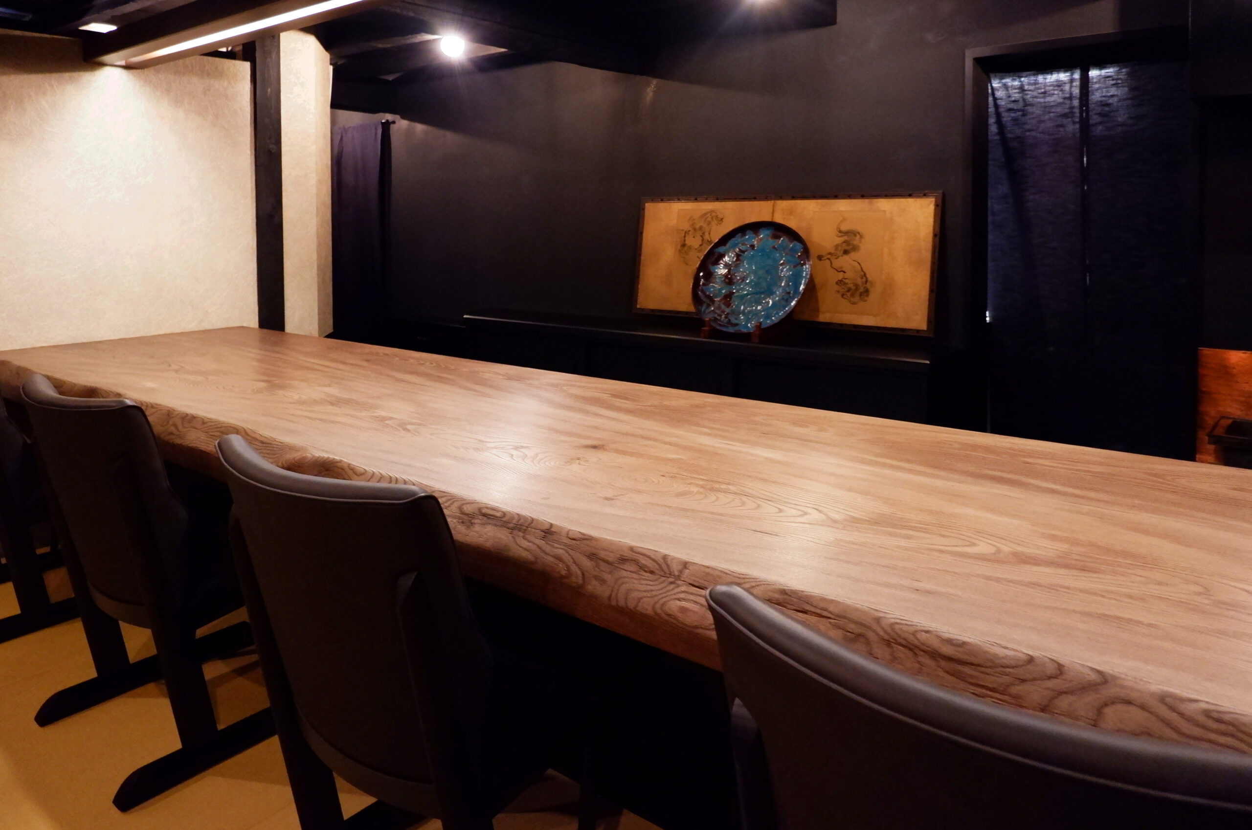 ひと際存在感を放つのは2000年前の神代木を用いたカウンター。